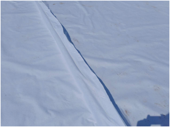 铺设黄瓜视频APP下载地址膜前,铺设人员首先应认真检查复合黄瓜视频APP下载地址膜有无破损、空洞、撕裂等缺陷。若存在缺陷,应及时用合格的母材修补,修补范围应超出破损部位周边10~20cm。
