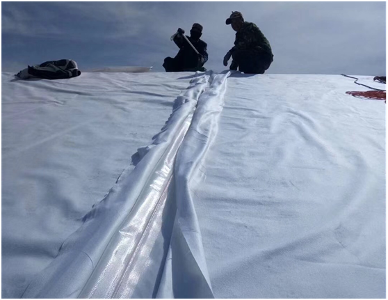 无论是旧塘改造还是新建池塘,护坡基面在铺设前须做平整处理,坡埂泥土须干燥,坡面避免凹凸不平,面上不能有凸出的石头或尖锐的物体,坡面的平整可采取削、回填土层的办法后再夯拍实,若塘埂坡面砾石较多,可采取薄土层覆盖后再拍实的方法,尽量避免砾石或尖锐的物体与膜直接接触,以延长膜的使用寿命。